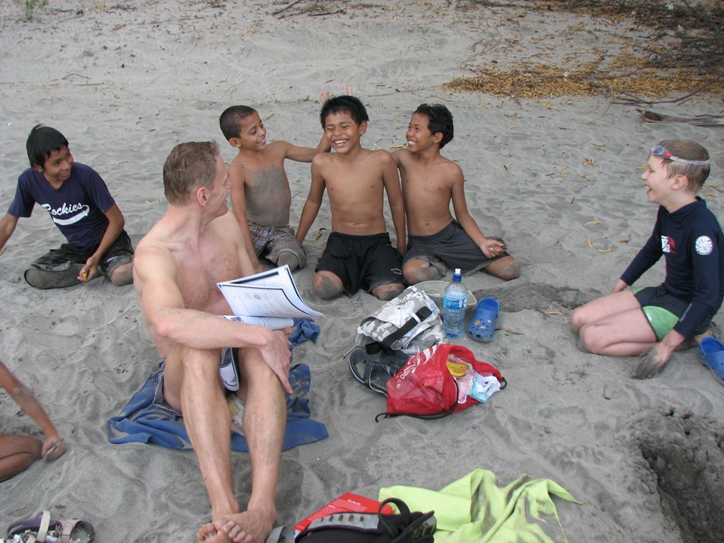 Na plaży, na którą chodzimy, jesteśmy jedyną białą rodziną obok kilku nielicznych grupek miejscowych. Dominują tam dzieci, których każdego dnia jest coraz więcej. Fama szybko sie roznosi