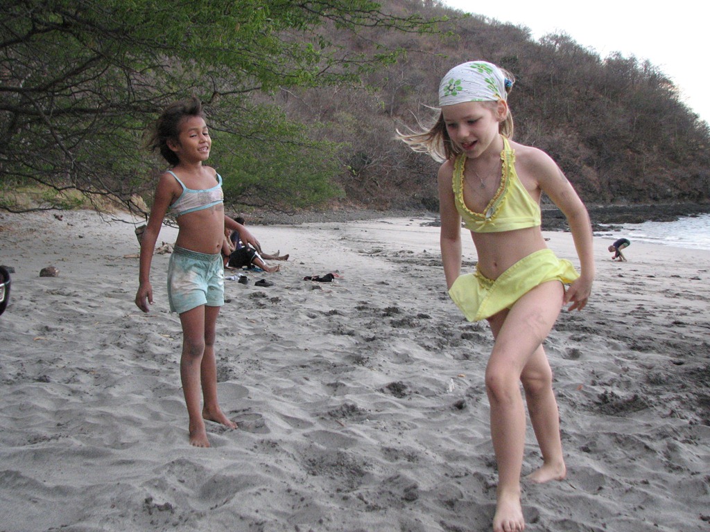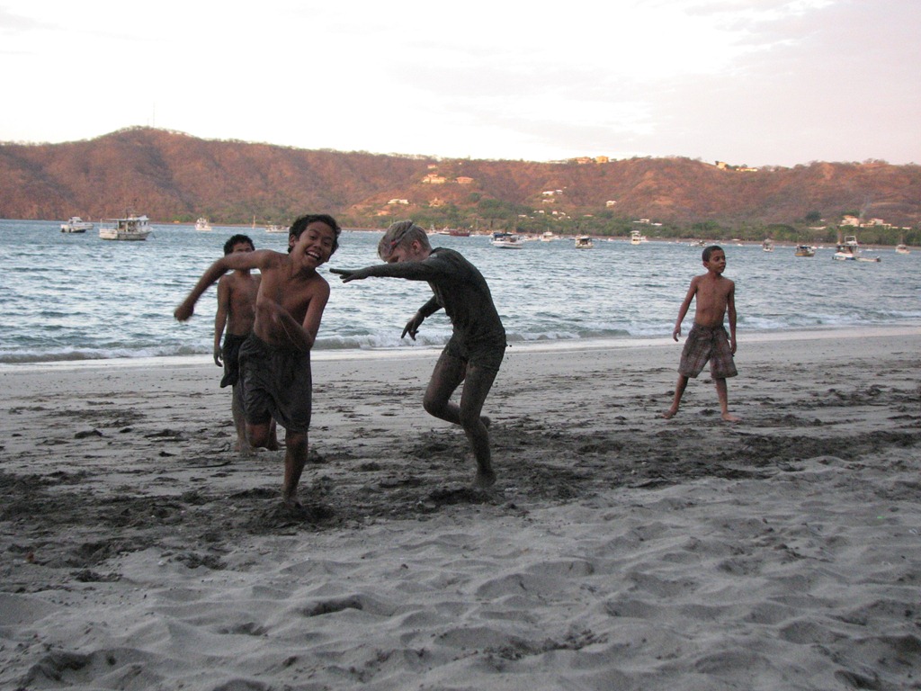 Wracając do dzieci, zaczęło się od niewinnego kopania. Potem, aby się ochłodzić wspólne nurkowanie w Pacyfiku i cała masa niezliczonych zabaw na plaży jak zbieranie małych krabów w muszelkach, rzucanie się piachem, stanie na głowie, “zanurzanie” głowy w piachu na czas itd.
