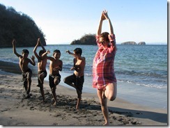 It is amazingly hot during their winter. We get up before 6 am to get some fresh air. This is our time for jogging, yoga and peaceful greeting of the day. The kids wake up at 8 am and we have a lazy breakfast, mostly fruits, which is extremely delicious here. Juicy and sweet pieces of pineapple, cold watermelon, melon, papaya. Homeschooling begins at 9am and continues until 12:30 pm. After lunch there is a short siesta and then we go to experience a bit of Pura Vida on the beach.