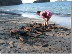 Wojtus i Ania made a few friends here. Everyday they play with the local kids on the only white beach in the neighborhood. Someone said that socializing is a big problem for homeschooled kids. Well, we do not have that problem. Wojtus learns a few words in Spanish and in exchange teaches the boys a few English words. Even though they cannot communicate they understand one another very well.