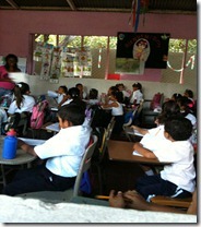 Innym razem wybraliśmy się zobaczyć miejscową szkołę i uczestniczyliśmy w lekcji angielskiego. Tego dnia dzieci uczyły się „good morning” (dzień dobry), a nasze zobaczyły jak może wyglądać szkoła z prętami w oknach, gdzie w jednej klasie uczy się nawet 40 dzieci. Nie ma tam szyb, zresztą jest tak gorąco, że są zupełnie zbędne. Jak zobaczycie na zdjęciach zarówno nauczyciele jak i uczniowie noszą tam szkolne mundurki. Uczniowie białe bluzki i granatowe spódnice / spodnie, nauczyciele jednakowe białe koszulki typu polo. Po szkole te same ubrania dzieci noszą przez cały dzień. Praktycznie i tanio.