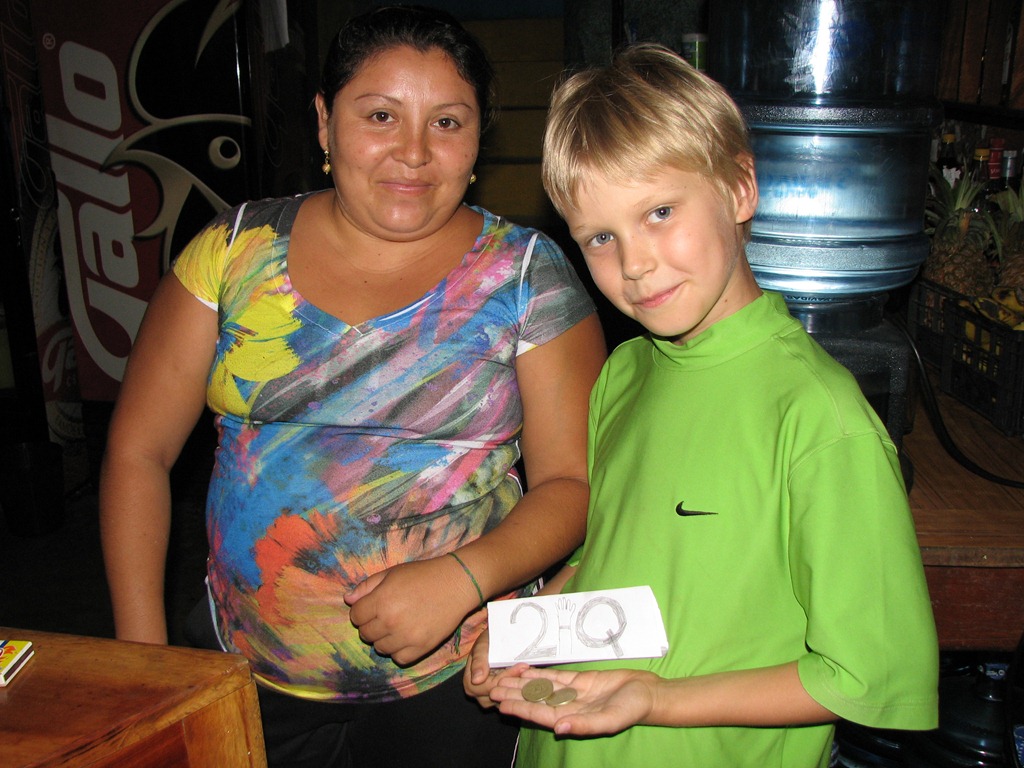 Wojtuś przejawia niesamowitą smykałkę do biznesu. Poza tym, że interesuje się, do jakiej firmy należą chipsy „ Lay’s” to w każdym kraju znajduje pieniądze na ulicy i wciąż ma nowe pomysły jakby tu zarobić. Ostatnio sprzedawał w hostelu własnoręcznie plecione bransoletki z muliny za jedynie 2Q, czyli polskie 80gr! Śmiejemy się, że ma to po dziadku Jurku. Poniżej zdjęcie ze szczęśliwą nabywczynią plecionki.