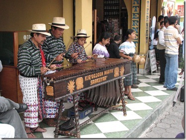 The marimba is the national musical instrument of Guatemala. It has an amazing sound, and is usually played on by 3-4 musicians. In shape, it similar to a xylophone and it is made of palisandre wood. The sounds of marimba can be heard everywhere in Guate, even in church, where it is, not the organ, the main instrument. Listening to marimba I also realized that my cellphone ring tone is marimba as well. Maybe yours as well …? Just watch and listen.
