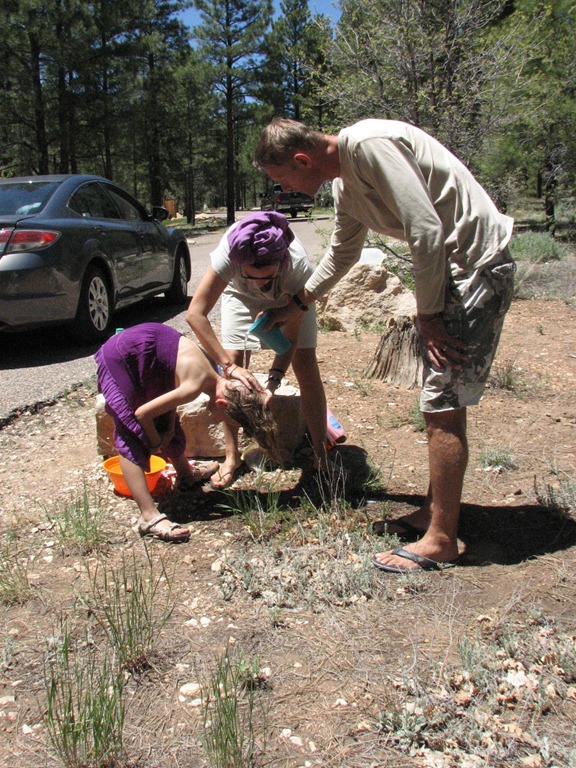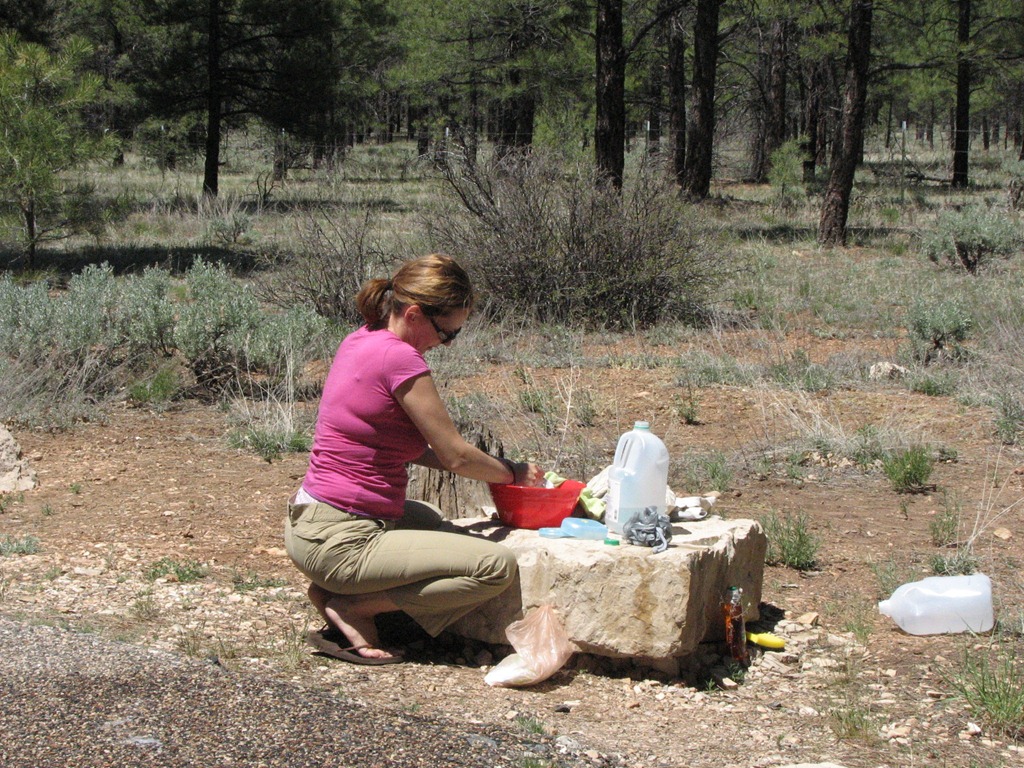 Sporo czasu w ciągu dnia poświęcaliśmy na podstawowe czynności. Ja to nazywam pielęgnacją życia. Mam na myśli organizację ogniska domowego, przygotowanie posiłków, pranie, kąpiel, noszenie wody i drewna. Samo zagrzanie wody w słońcu trwało kilka godzin :). Pewnie te kąpiele na łonie natury za prowizoryczną zasłonką, którą rozwiewał wiatr na wszystkie strony, zostaną na długo w naszej pamięci.