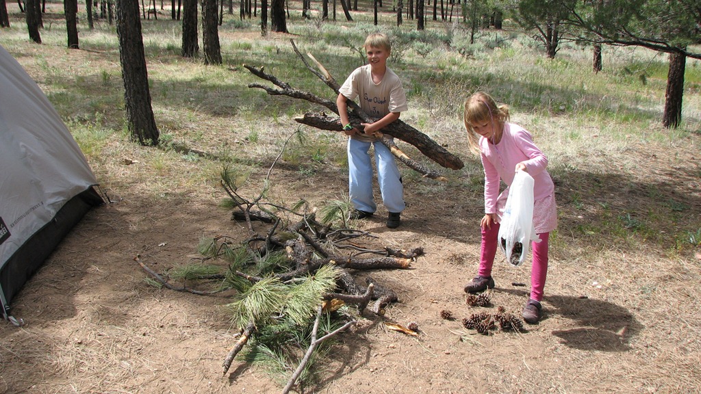 Po tygodniu obozowania mam wrażenie, że Wojtuś zmienia na dobre kolor skóry. Każdego dnia staje się ciemniejszy, a niektórych części jego ciała, takich jak kolana i ręce nie można już doczyścić. Dzisiejszego poranka Ania przypominała mi „dziewczynkę z zapałkami” o rozczochranych włosach i sadzą wysmarowanej buzi :). Zastanawiam się, kiedy ostatnio tak spędzałam czas. Było to jakieś 20 lat temu, czas szkoły średniej i studiów. Przypomniałam sobie jak dobrze jest żyć tak blisko natury.