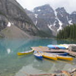 Near Banff it is worth visting Lake Louise and the neighboring, other ice lake called Morraine Lake. The color of the water in those lakes is fabulous. On a sunny day their surface reflects the surrounding glaciers. Many places offer interesting hiking trails with frequent bear warnings.