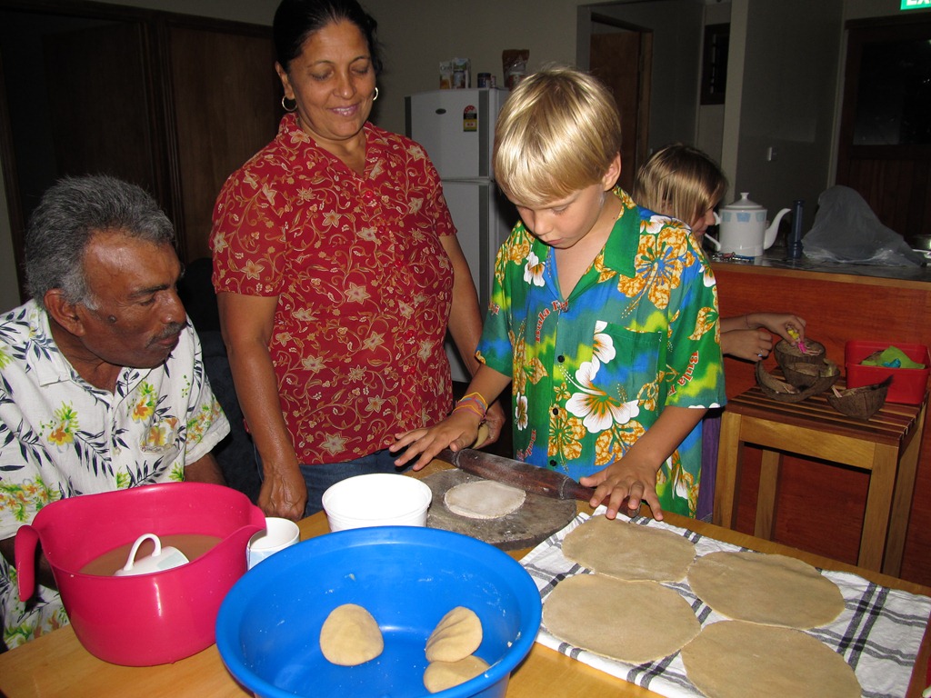 Razem robiliśmy hinduski chleb Roti, który wyglądem przypomina tortillę. Hindusi zwykle jedzą go na śniadanie z farszem warzywnym lub rybnym. Dzieci dostają go do szkoły na lunch. Rai przygotowuje go codziennie wczesnym rankiem (pomiędzy 4.00 a 5.00) dla swojej rodziny.