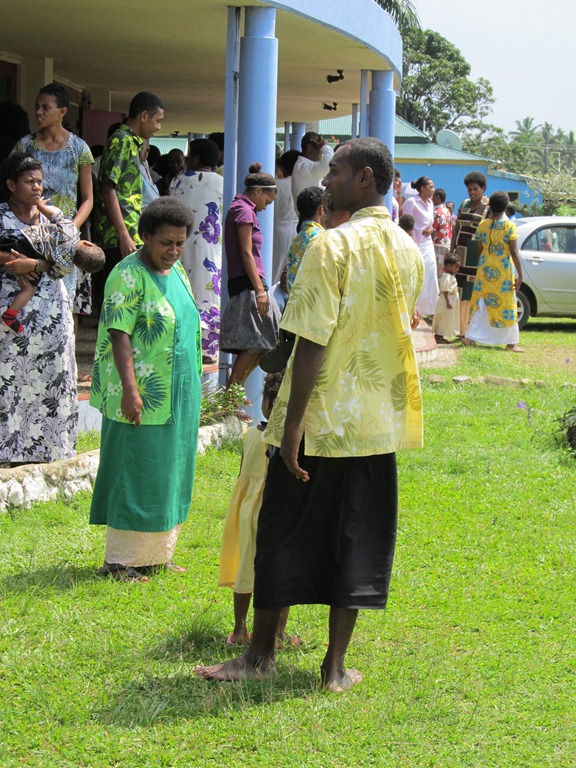 Tradycje Fidżi nie ograniczają się tylko do kuchni. Ciekawy jest też sposób ubierania miejscowych, a szczególnie mężczyzn. Strojem odświętnym, np. na niedzielną Mszę Św., jest koszula zwana, bula shirt, oraz … tak … zawijana spódnica, tzw. sulu. Strój ten nam się tak spodobał, że wraz z Wojtusiem zaopatrzyliśmy się już w bula shirt. Wojtuś wspomina też o tym, że bardzo chciałby dostać druga część stroju, czyli sulu. W miejscowym sposobie ubierania dominują kolory radosne, motywy kwiatowe na czele z najważniejszym tu kwiatem, hibiscusem.