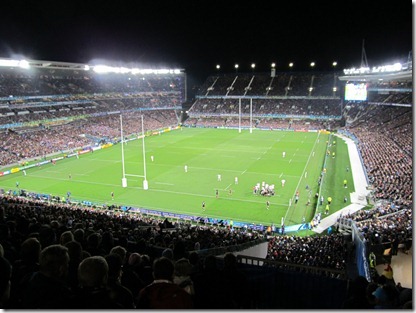 Back to new friends from Poland, namely from Lodz, it turned out they were former rugby players. During our conversation they mentioned they had an extra ticket for a blockbuster game that evening between the host-team, New Zealand and France. To rugby buffs I do not have to explain the weight of such an encounter. To laypeople let me just compare it to a match between Brazil and Germany during a football world cup. Rugby is a very popular sport with tv audience smaller only than the footbal world cup and the olympic games.