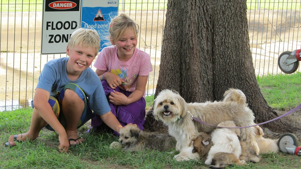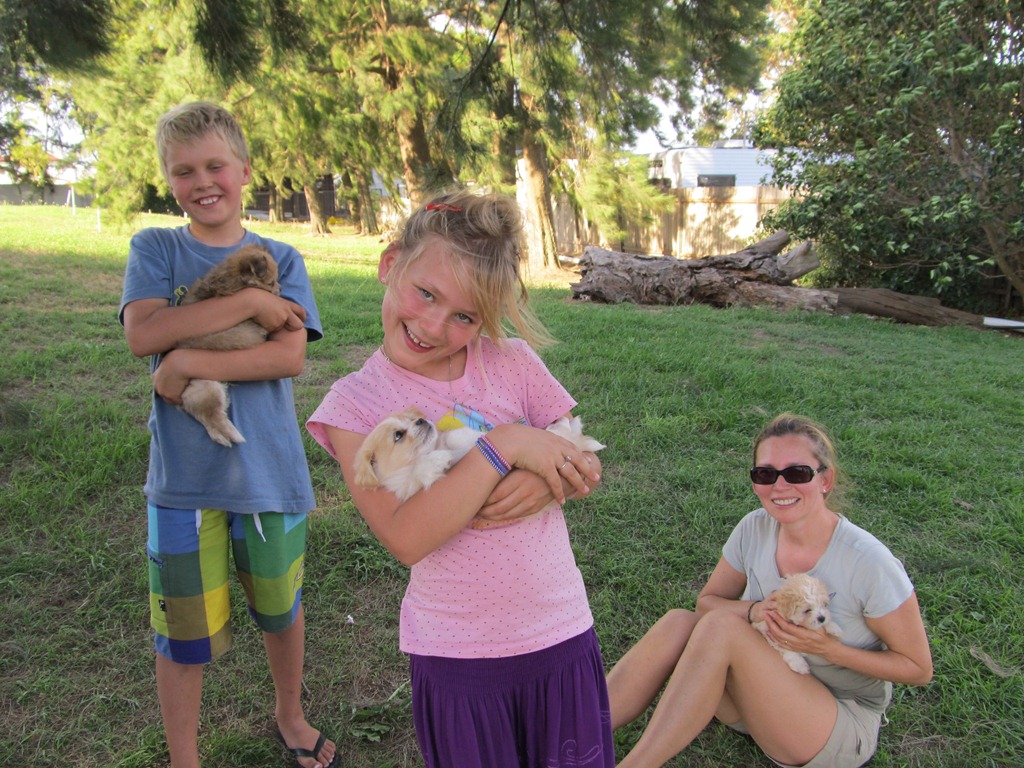 . Jutro są małej Ani urodziny i Debbie chciała dać jej w prezencie jednego z siódemki piesków, które planują sprzedać. Niezwykłe! Ponieważ jeszcze wiele tysięcy kilometrów podróży przed nami niestety nie będziemy mogli wziąć dodatkowego pasażera. Życzeniem naszych dzieci już od wielu miesięcy jest to, aby po powrocie do domu, prosto z lotniska pojechać do schroniska dla zwierząt i tam zaadoptować jakiegoś bezdomnego psa, a może dwa.