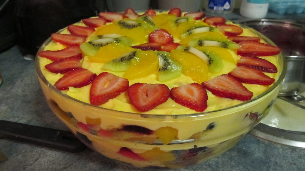 Desery zdobią ciasta pieczone w kształcie wieńca bożonarodzeniowego, tradycyjna babka z owocami mango, daktylami i orzechami macadamia rosnącymi jedynie w Australii, a także ciasto Trifle, które mieliśmy okazję skosztować w domu Grażynki i Witka.