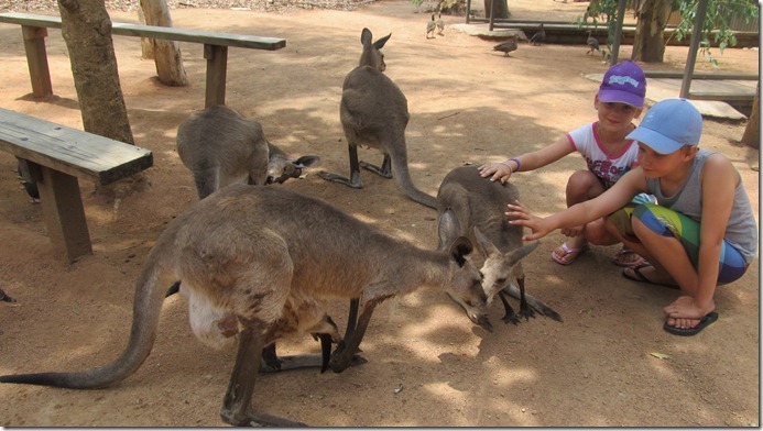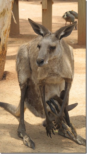 It is hard not to mention wild dingoes here. Contrary to a common belief, dingo is not a native animal to Australia. Most likely it was brought here from Asia by seafearers around 4000 years ago. Initially it was a domesticated animal. Coming to Australia it became wild again. Since that time they have played an important role in both the natural balance and the Aborigine culture. Dingoes are well adjusted to the harsh climate of OZ. They are several times smarter than domesticated dogs and have very sophisticated hunting techniques. They also pose danger to people. The ones we patted were mild since they were born in captivity.