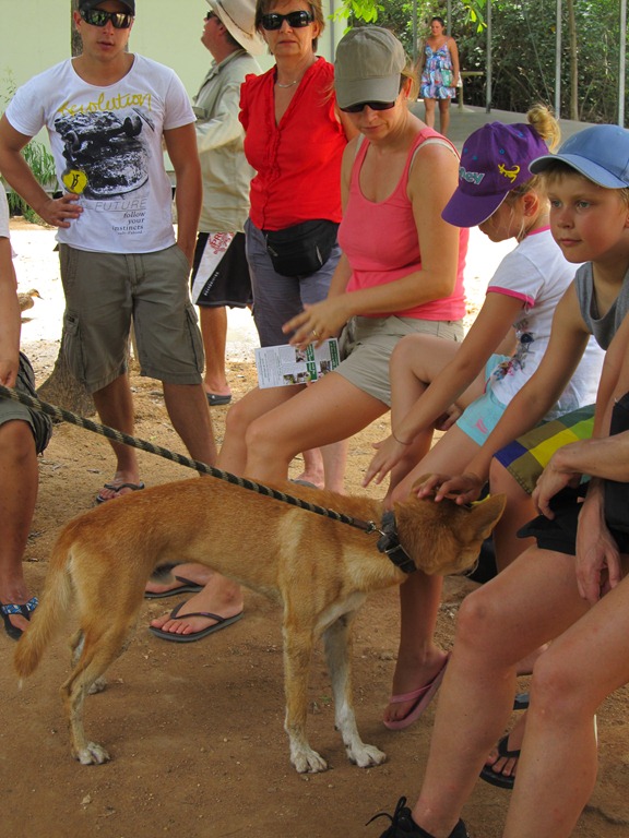 Pisząc o zwierzętach australijskich nie sposób nie wspomnieć o dzikich psach dingo. Jest kilka teorii na temat, jak trafiły one do Australii. Tak, dingo to nie jest rdzenne zwierzę australijskie. Według najbardziej popularnej psy te przywiezione zostały do Australii przez marynarzy z Azji około 3500-4000 lat temu. Pierwotnie było to zwierzę udomowione, jednak przybywając do Australii ponownie stało się dzikie. Od tego czasu odgrywają ono ważna rolę w kulturze aborygeńskiej oraz w równowadze biologicznej Australii polując na dzikie koty, króliki i świnie. Dingo są świetnie przystosowane do życia w ciężkim klimacie Australii. Są one wielokrotnie inteligentniejsze od psów domowych oraz mają wyrafinowane techniki polowania w grupie potrafiąc zabić nawet krokodyla. Dingo potrafią też być niebezpieczne dla ludzi. Te, które głaskaliśmy, były łagodne, gdyż urodziły się w niewoli.
