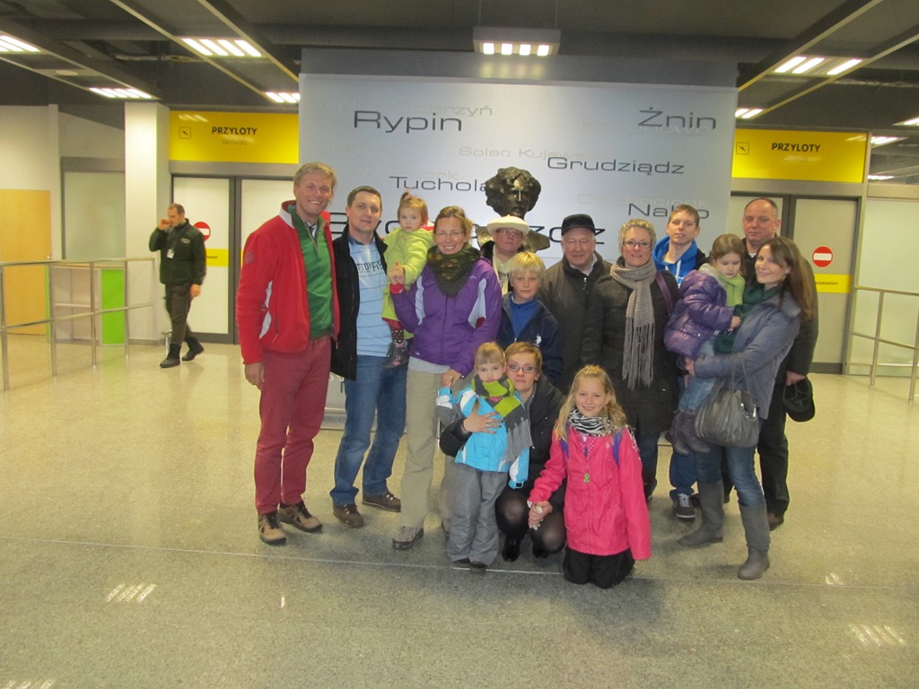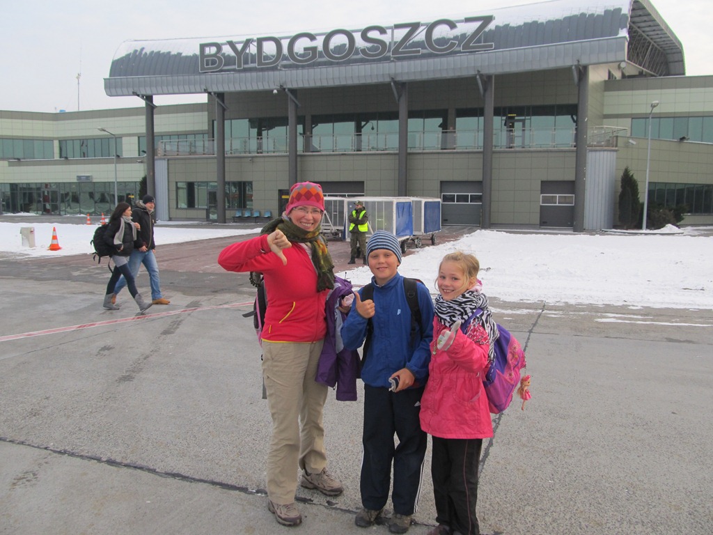 Wreszcie nadszedł moment, kiedy wylądowaliśmy w Polsce. Podobnie jak w Londynie, tutaj również przywitała nas sroga zima, ok –20 C. Jeszcze dwa dni wcześniej było +34 C! Wracając do Polski postanowiliśmy lądować nie we Wrocławiu, gdzie mieszkamy, lecz w Bydgoszczy, z której bliżej nam było na naszych rodzin. Dzięki temu mieliśmy też komitet powitalny na lotnisku