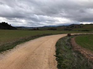 Po zejściu z tego wzniesienia, które było akurat w centrum miasteczka Monjardin, był długi 10 km przebieg bez miast, wsi i żywej duszy po drodze. Obraz tłustego pączka plus moja medytacja trzymały mnie w ryzach.