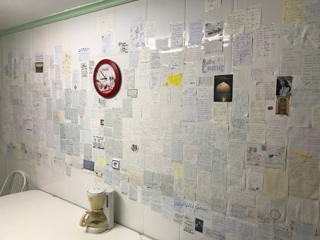 Po wybraniu numeru usłyszałem sygnał w telefonie i na zewnątrz budynku, przed którym staliśmy w deszczu, który padał dziś przez sporą część dnia. Po trzecim dzwonku odebrał miły Pan. Na hasło, dos peregrinos, podniósł żaluzję na ostatnim piętrze budynku, który wyglądał na kompletnie pusty. Pozdrowiła nas i następnie zaprowadził do przytulnego mieszkania, które w sezonie służy za albergue.
