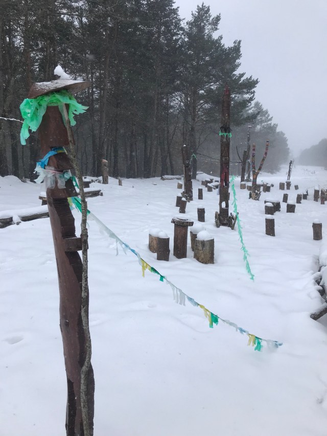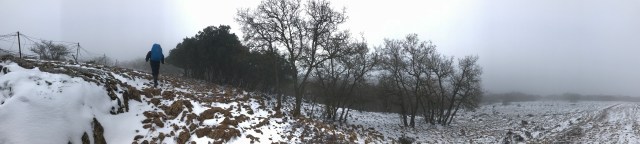 Po kilku dniach dość dobrej pogody dzisiejszy etap zanosił się na dość wymagający. Miałem się dziś wspinać na najwyższą wysokość jak dotąd na szlaku. Poza tym prognoza pokazywała intensywne opady śniegu na trasie i porywisty wiatr. Jakby tego było mało ze względy na to, że rano wszystko było zamknięte zacząłem dzień bez śniadania. Najbliższy bar miał być po 12 km marszu w zamieci. W razie czego przegryzałem po drodze baton energetyczny, który od jakiegoś czasu czekał na czarną godzinę.