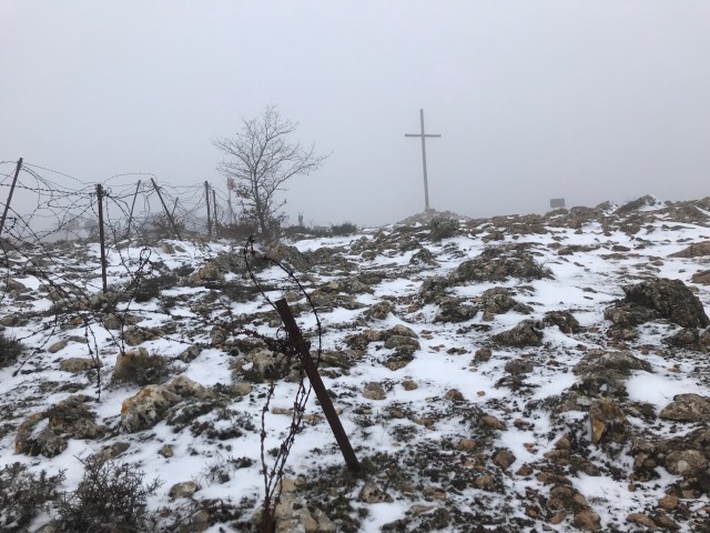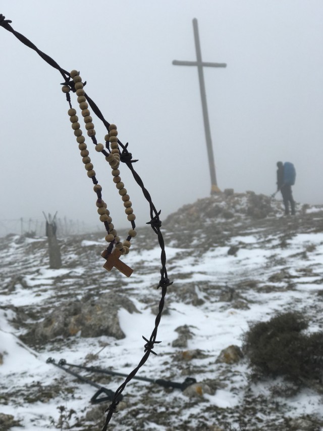 Droga do Cardeñuela okazała się dla mnie bardzo symboliczna. Dziś wtorek, więc odmawiałem Tajemnice Bolesne Różańca. Poza tym jest dziś koniec Karnawału oraz Wigilia Środy Popielcowej. Podchodząc pod górę najpierw rzuciła mi się w oczy zmiana podłoża, które stawało się coraz bardziej kamieniste. Potem jeszcze drut kolczasty po lewej stronie odgradzający jakiś dawny teren wojskowy. Na koniec zatkało mnie. Na szczycie stał samotny krzyż. Istna Golgota. Dlaczego dziś akurat to mi się przydarzyło? Czyżby przypadek?
