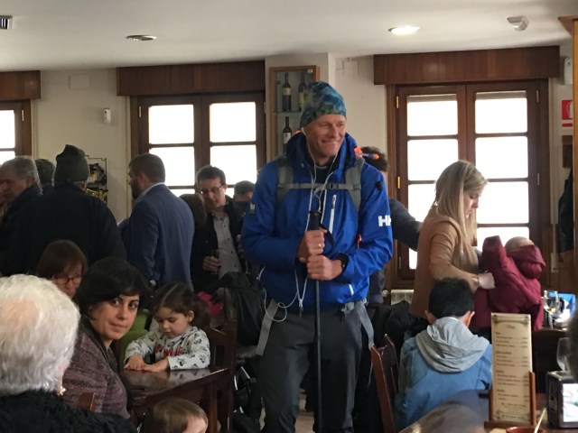 After another lonely march today I reach Villalcazár de Sirga. I decide to have lunch somewhere in that town and find fast internet connection to watch the final round of ski jumping at the Winter Games in Korea. Poland has a chance to win a medal today. Admiring another beautiful piece of architecture I suddenly hear a familiar voice calling my from a local bar. It’s Henry.