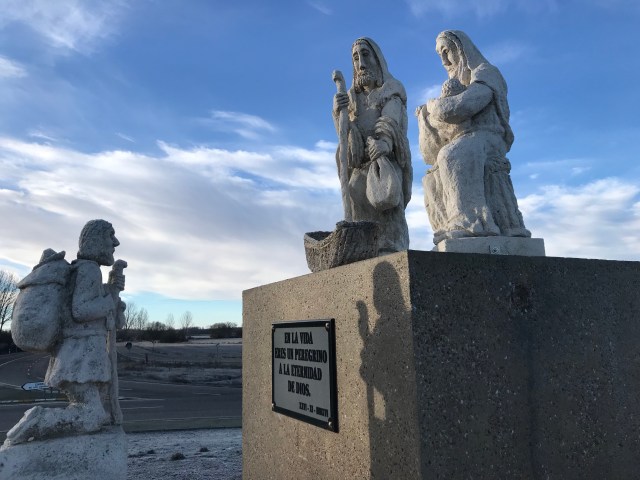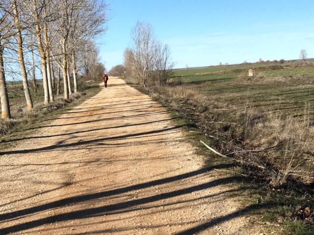 Today’s route was very monotonous and flat, which helps me in my meditation. Endless stretches of meseta reminded me of God’s infinity. After 10 km I made a pitstop to dress my wound again and massage the swollen leg. Thank God today our walk is flat and you can choose to walk on the asphalt sometimes instead of stony trails.