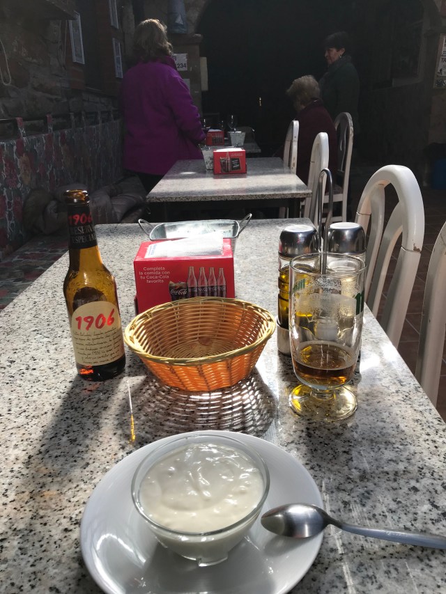 I have lunch alone at a nice albergue in Rabanal. Actually I am accompanied by older ladies whom I show pictures of my family and wife. Once they find out I am celebrating our wedding anniversary I get a special home made dessert made by the abuela. So good.
