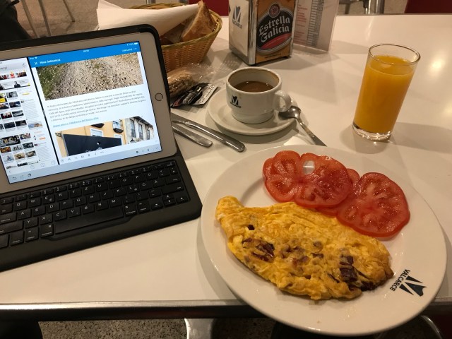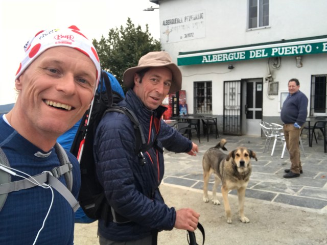 As if we had not enough of climbing today at the very end we have a very steep approach to Alto do Poio 1335 m a.s.l. It is here where we decide to stay for the night at Albergue del Puerto. We are greated by a welcoming host, Jose Antonio, and his huge dog Toby. Though it is pretty cloudy in the evening it is hard to believe a snowstorm is coming. Only a parked snow plough on the side of the road suggests this might be a serious weather transition.