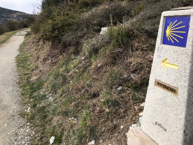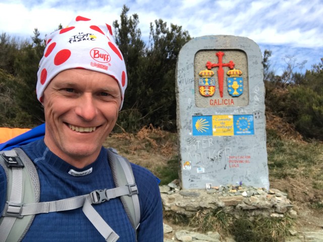 About 1 km before reaching the top of O Cebreiro pass we cross the border between the provinces of Castilla y Leon, after 16-day walk there, and Galicia.