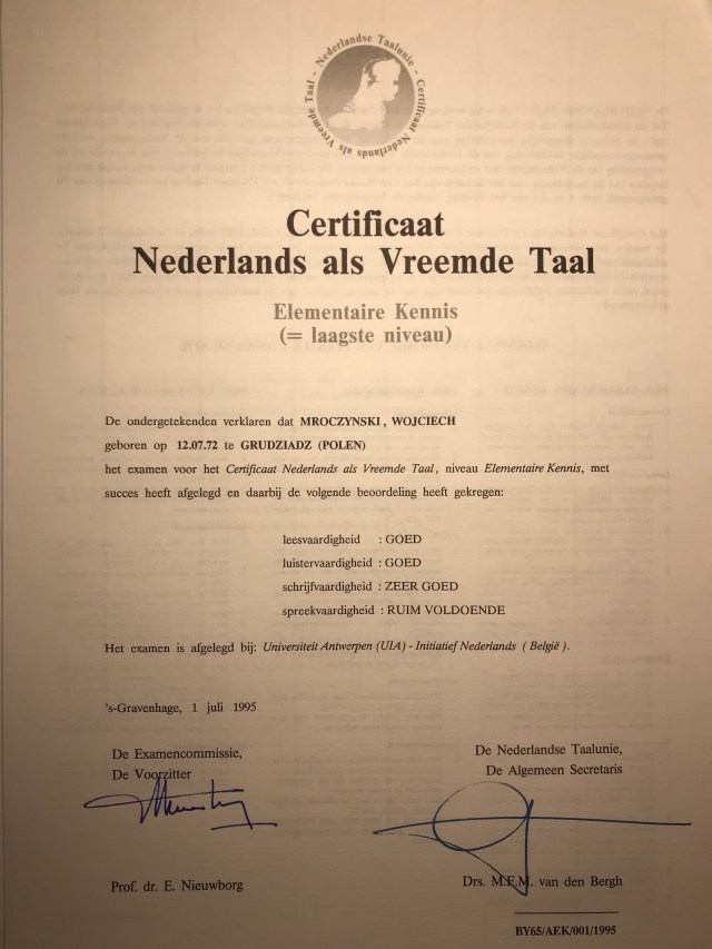 Na studiach zacząłem się uczyć hiszpańskiego i stosunkowo szybko, bo po około 2 latach zdałem hiszpański egzamin państwowy z tego języka. Potem jeszcze doszedł nieoczekiwanie język niderlandzki (potocznie zwany holenderskim) w czasie półrocznego programu wymiany studenckiej Tempus w Antwerpii. Mimo, że nie musiałem się uczyć w czasie pobytu w Belgii tego języka założyłem się z kolegą, że jest możliwe nauczyć się nowego języka obcego w dwa miesiące na tyle, aby zdać podstawowy egzamin państwowy. Tak też się stało.
