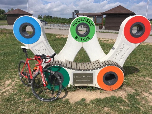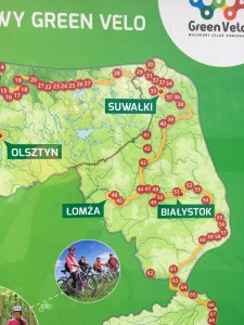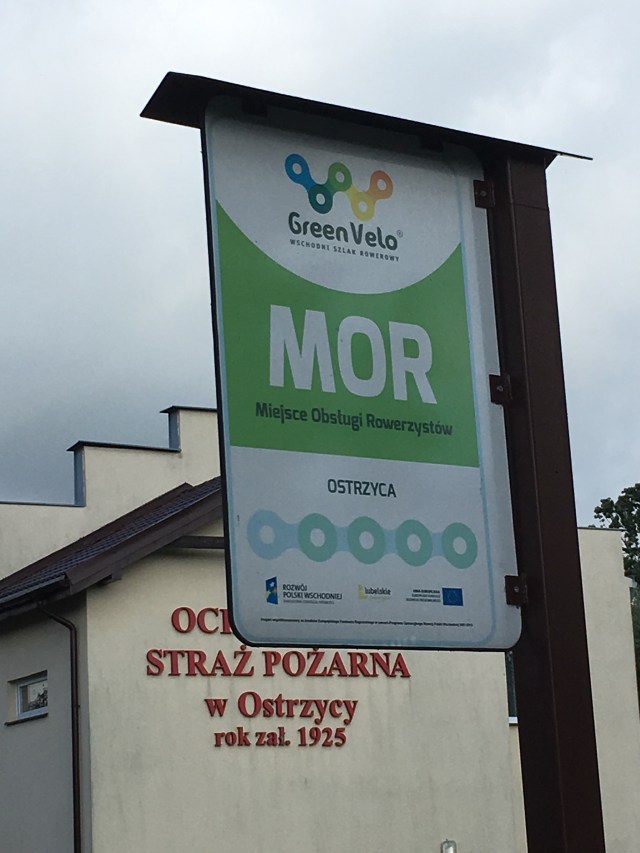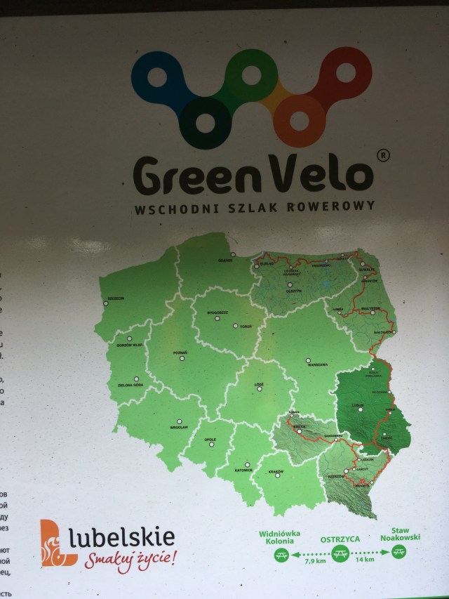 Jeżdząc rowerem po tej części Polski zacząłem się każdego dnia natykać na ciekawe znaki przydrożne informujące mnie, że jadę słynnym szlakiem rowerowym Green Velo. Ciągnie się on meandrując trochę wzdłuż wschodniej rubieży Rzeczpospolitej licząc w sumie ponad 1800 km. Szlak ten jest doskonale oznakowany. Co jakiś czas można się też natknąć na tzw. MORy, czyli miejsca obsługi rowerów. Naprawdę ta infrastruktura dla rowerzystów robi wrażenie. Jeśli idzie o kolarzy to niestety szlak GreenVelo czasem wiedzie drogami polnymi i szutrowymi, po których cieżko się jedzie na cienkich oponach.