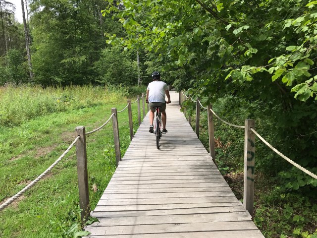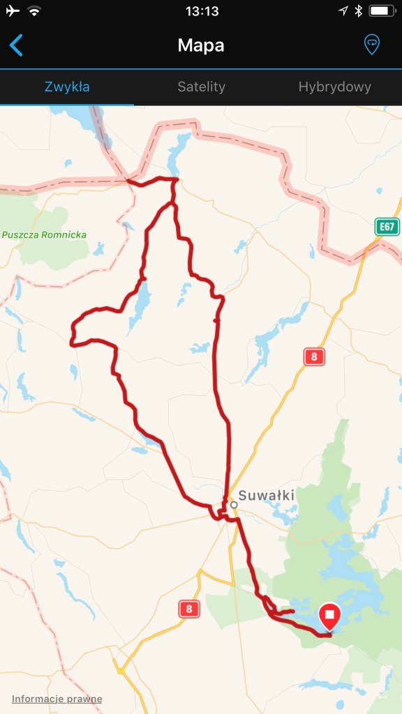 Jednego dnia wypuściłem się z synem na rajd rowerowy wokół Jeziora Wigry. Trasa jest bardzo urozmaicona i niełatwa technicznie. Ten wysiłek wynagradzają zapierające dech widoki i zakamarki Wigierskiego Parku Narodowego. Udało się nam w dobrej formie objechać jezioro ale mój zegarek z GPSem poddał się gdzieś na 3/4 przebytej trasy.