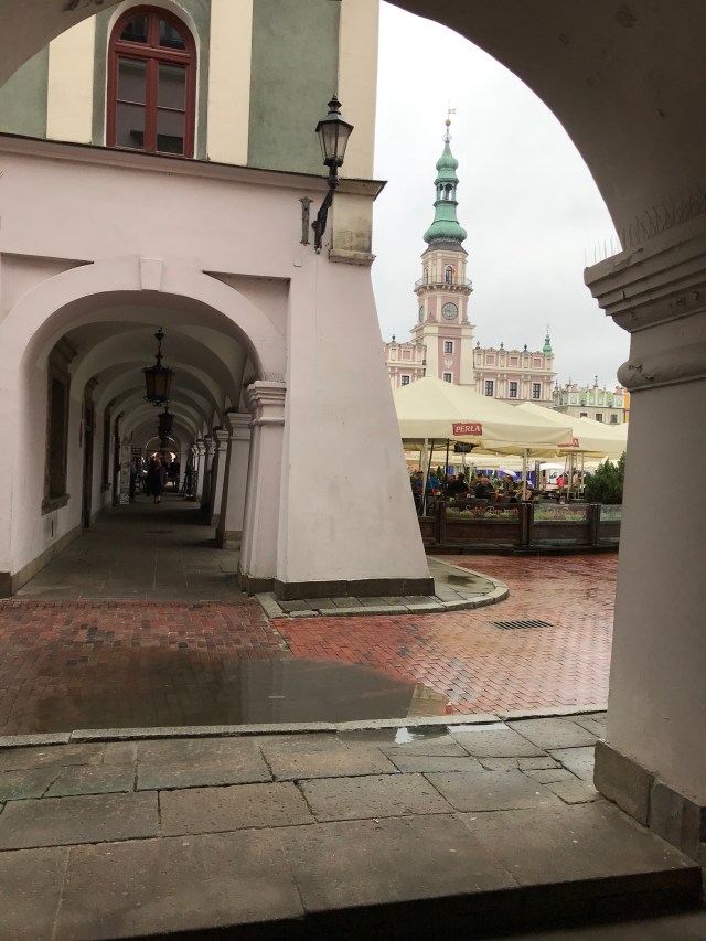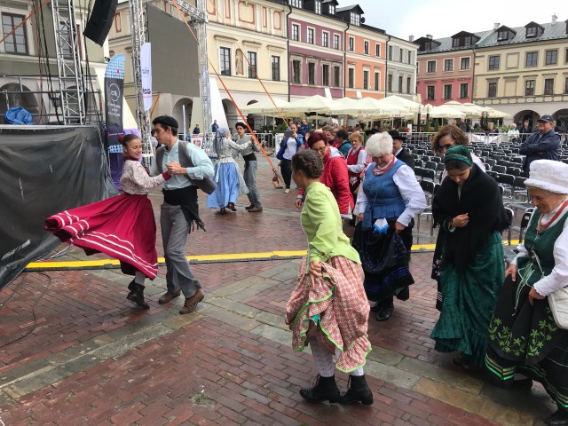 Mówiąc o Zamojszczyźnie jego szczególną perłą jest Zamość. Nawet brzydka pogoda nie mogła nam popsuć złego wrażenia z wizyty w tym przepięknym mieście. Miłą niespodzianką był też odbywający się tam akurat festiwal folkloru z wieloma zespołami z zagranicy. Jedząc w ormiańskiej restauracji na rynku słuchaliśmy melodii fado śpiewanych przez zespół z Portugalii.