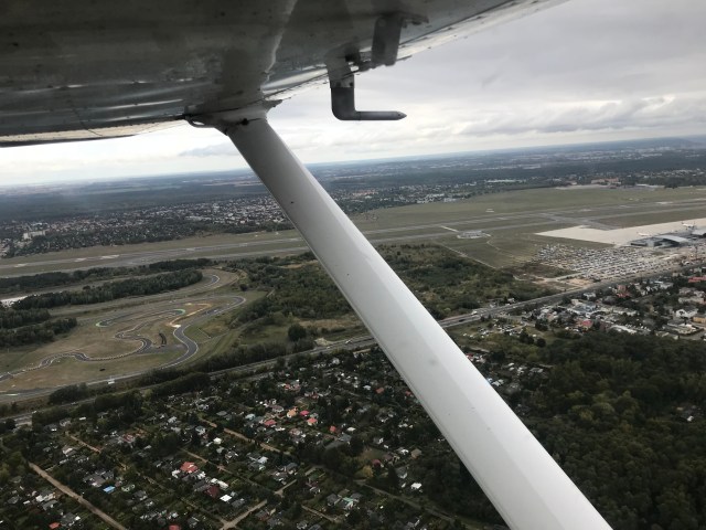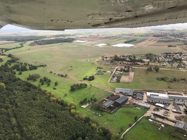 Mój pierwszy lot szkoleniowy odbył się w bardzo wietrznych, a przez to turbulentnych, warunkach. Opanowanie samolotu, rzucanego co rusz w rozmaite strony przez porywy wiatru, przypomniało mi ujeżdżanie narowistego konia. Najgorsze turbulencje, jakie przeżyłem w samolotach pasażerskich wydawały się delikatnym wspomnieniem w porównaniu z tamtym doświadczeniem. Co za próba?! I to na pierwszy ogień! Na szczęście mnie to nie wystraszyło i pojawiłem się na kolejnej lekcji u mojego instruktora i bardzo doświadczonego pilota, tj. Pani Danuty z firmy Skyway. Zajęło mi trochę czasu zanim usłyszałem od Niej pierwszy komplement na temat swojego dobrego lądowania.