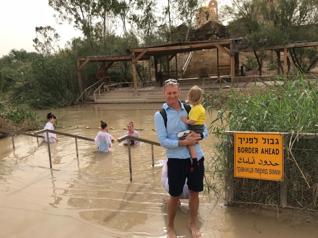 Miejsc Chrztu Jezusa w Jordanie na granicy z Jordanią