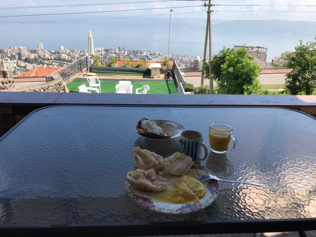 Było to na Górze Oliwnej niedaleko rzekomego miejsca Wniebowzięcia Maryi. Ponieważ była pora lunchu, weszliśmy do miejsca wyglądającego na bar z tarasem z ładnym widokiem na Jerozolimę.